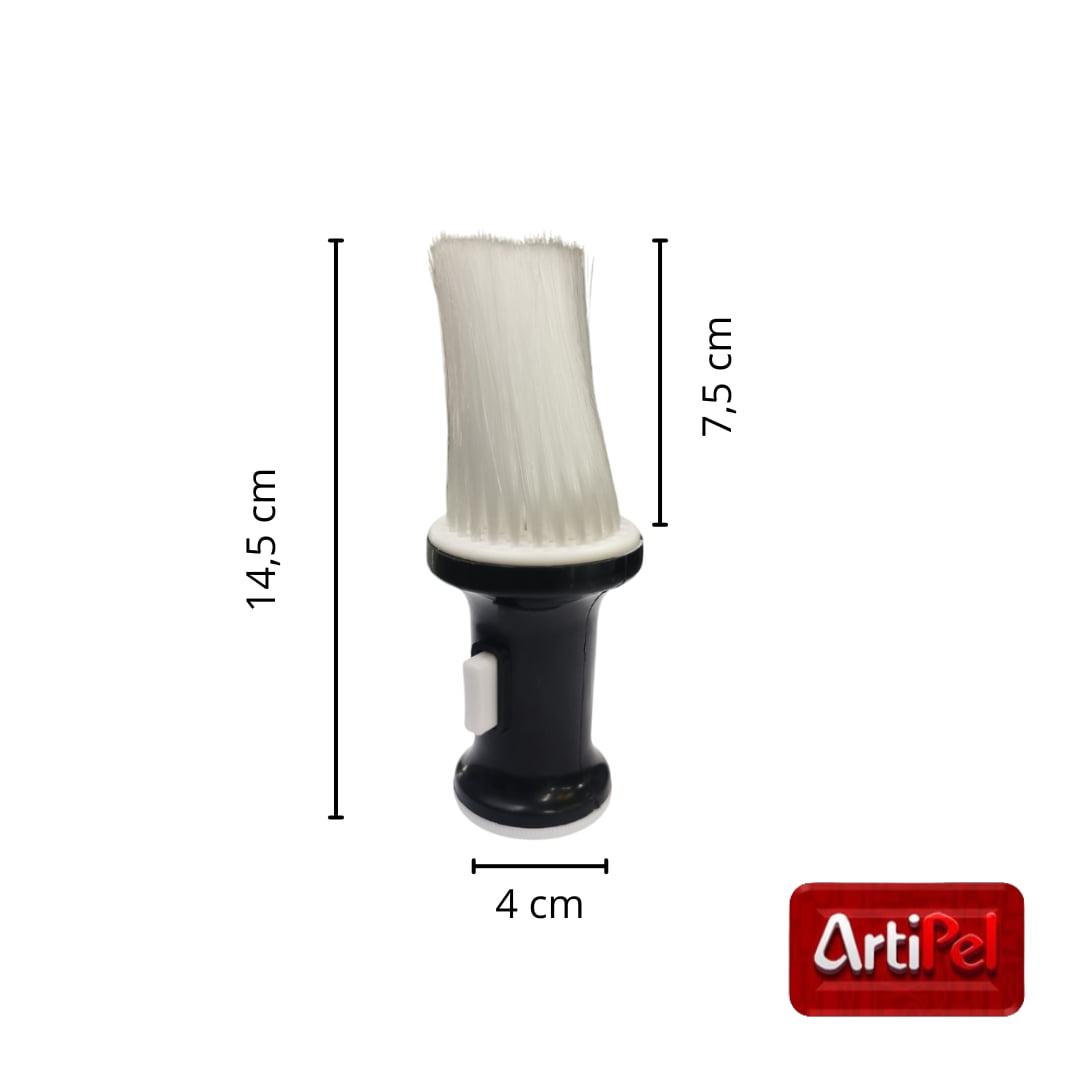 El Botapelo Talquero Plástico es un accesorio imprescindible en barberías y peluquerías, diseñado para retirar fácilmente los restos de cabello del cuello, rostro y orejas después del corte. Cuenta con un depósito integrado para talco, brindando frescura y evitando irritaciones en la piel. Fabricado en plástico resistente y ligero, es ideal para uso diario y continuo.