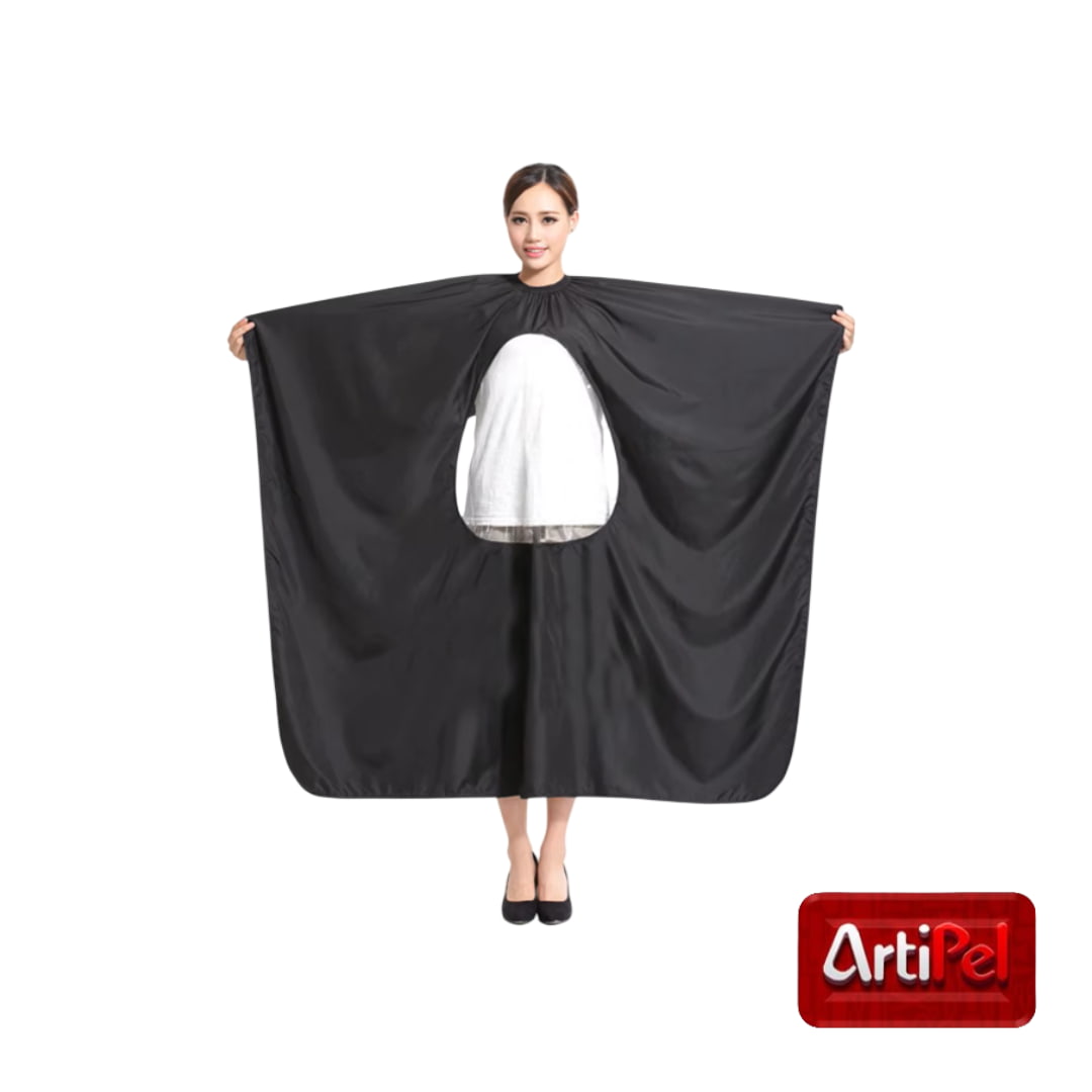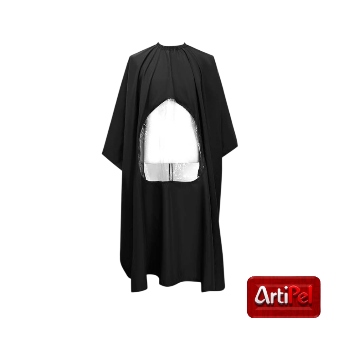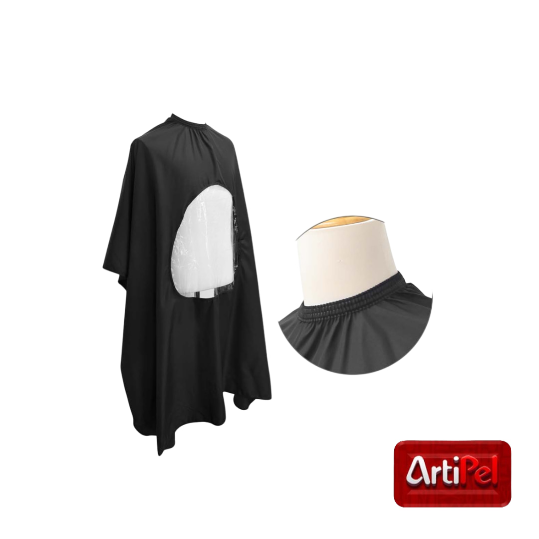 La Capa de Peluquería y Barbería con Ventana está diseñada para mejorar la experiencia del cliente durante el servicio, permitiéndole usar su celular, libro o tablet sin sacar las manos de la capa gracias a su ventana plástica transparente.